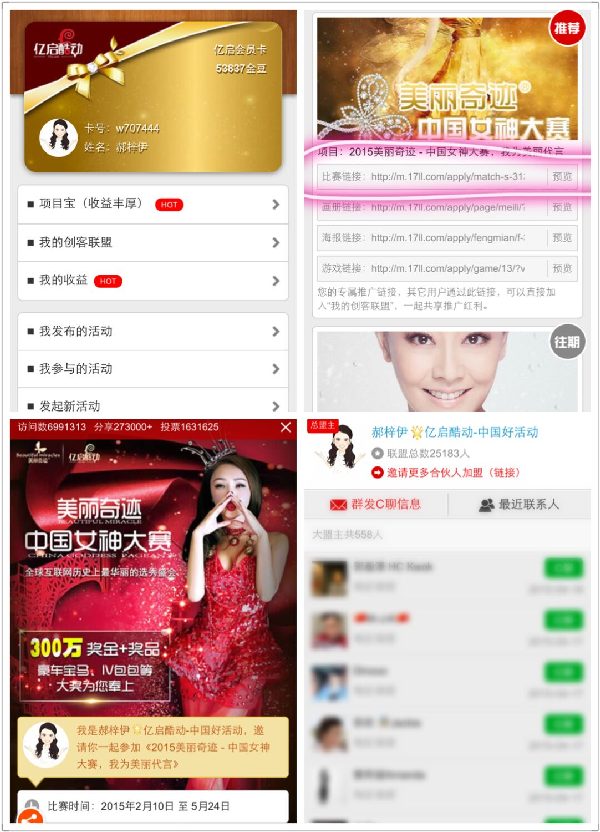 (2)直接输入网址:http://m.17ll.com 亿启酷动手机官网,首页点击“2015美丽奇迹中国女神大赛”进入“美丽奇迹魅力运动会”代付界面。